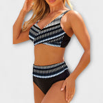 • Flerfarvet design i klare farver fremhæver energi og selvtillid ved vandet.