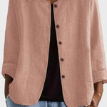 • Design og stil: Klassisk krave, minimalistisk front og 3/4 lange ærmer skaber en tidløs silhouette, der nemt kan styles med jeans, nederdel eller buks.
