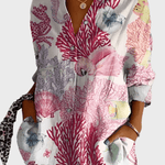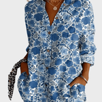 Rosa | Blomstret skjorte præsenterer en forening af tidløs elegance og håndværksmæssig omhu. Den lette, åndbare kvalitet giver komfort gennem alle årstider, mens det demure blomsterprint og den fine finish vidner om omtanke for detaljer og oprindelse. Rosa signalerer arv og varig værdi, og med et begrænset antal enheder tilgængelige fremstår skjorten som en eksklusiv detalje i enhver garderobe. Den elegante V-hals fremhæver den feminine silhuet, mens lange ærmer og smarte manchetter tilføjer alsidighed i hverdagen. Let materiale og raffineret struktur gør Rosa nem at style året rundt med hvide bukser eller neutrale basisvarer.