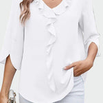 Andrea | Sort Bluse udtrykker tidløs elegance og stolt håndværk, der afspejler brandets arv. Den gravitationsdybe sorte nuance fremhæver snittet, de romantiske flæser og den feminine V-udskæring, mens frontflæsers detaljer tilføjer bevægelse. 3/4-ærmer og et diskret sidesplit giver en moderne, struktureret silhuet uden at gå på kompromis med komforten. Designet i udvalgte materialer og med håndværksmæssig omhu viser blusens fokus på holdbarhed og nutidig lethed. Dens begrænsede antal forstærker en følelse af eksklusivitet og samlerappel, som gør Andrea | Sort Bluse til et kært objekt for samlere. Let at style og bygget til at holde gennem sæsoner og begivenheder fra kontor til aften.