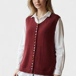Karmen | Strikvest fremviser en tidløs silhuet, hvor let vægt møder raffinement og holdbarhed. Håndværket viser sig i den finstrikkede konstruktion, de nøje udvalgte garnkvaliteter og den klassiske halsudskæring, mens diskrete knapper tilføjer en underspillet elegance. Den opretholder sin elegance gennem årtier og står som en klar erklæring om kvalitet og arv snarere end trendjagt. Begrænset antal giver hvert stykke en særlig værdi for dem, der søger absolut tidløs elegance og et varigt samlerobjekt i en sofistikeret kollektion. Den passer harmonisk til jeans, nederdele eller kjoler og lover uendelige stylingmuligheder uden at gå på kompromis med komfort eller stil.