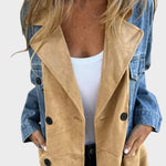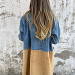 Alberte | Tofarvet denimfrakke forener klassisk trenchdesign med nutidig håndværk og nøje udvalgte materialer. Den todelte denim skaber struktur, mens mokka-paneler tilfører varme og taktil dybde. Hver søm er omhyggeligt udført, så frakken holder formen gennem sæsoner og bevarer sin tidløse appel. Den lange, rene silhuet og kontrastlukningen giver et sofistikeret udtryk, der passer til både hverdags- og aftenlook. Frakken signalerer stolt håndværk og bevidst provenance i materialeudvælgelse og konstruktion, og dens luksuriøse kombination af denim og mokka-paneler afspejler en arv af kvalitet og varig værdi. Begrænset antal understreger eksklusiviteten uden at svække den praktiske appel, og frakkens tidløse appel gør den til en investering med lang levetid og samlerværdi.