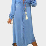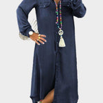Laura | Denim-kjolen udstråler tidløs elegance og håndværksmæssig omtanke. Den robuste vævede denim og den lange silhuet afspejler klassisk stil, mens nøje udvalgte materialer og en gennemtænkt konstruktion byder på ynde og holdbarhed. Knaplukningen langs hele kjolens længde giver udsøgt alsidighed og en fornemmelse af arv, der appellerer til samleren og kvalitetsbevidste. Den bløde, af høj kvalitet denim og den lange silhuet med rundet kant og længere bagkant skaber en tidløs bevægelse. Brystlommerne tilføjer diskret dybde og moderne nuance til fuldendt Laura Denim-kjolens karakter. Begrænset antal gør Laura Denim-kjolen til en eksklusiv investering for en krævende garderobe og lover værdifuld lang levetid.