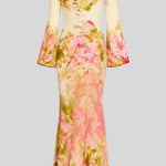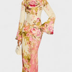 Laura | Solrig Maxikjolen udstråler romantik og ubesværet elegance til Garden Party-fester og solrige aftener. Kjolen fremhæver feminine former gennem en harmonisk blanding af sprudlende print og et let, bevægeligt stof i 100 % viskose, som falder let og luftigt og giver komfort hele dagen. Draperet silhuet følger kroppen elegant og bevæger sig med hvert skridt, mens det nøje afstemte printdesign og farver fanger lyset og tilføjer sofistikation. Håndværk og omtanke for detaljer gør Laura til en garderobeperle med lang levetid og tidløs appel, der kan bæres år efter år.