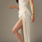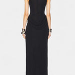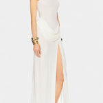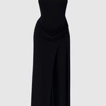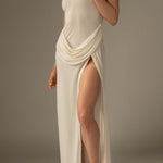 • Håndværk og drapering: Håndværksmæssig drapering skaber fluiditet og arkitektonisk elegance, der giver kjolen sin karakter.