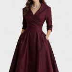 Opdag tidløs elegance med Ceryn | Satin Midi Kjole — en A-linje silhuet i glansfuld satin, der fremhæver din naturlige ynde til formelle aftener og særlige begivenheder. Det draperede omslagsliv, den strukturerede krave og de diskrete sidelommer forener sofistikation med funktionalitet og giver kjolen en let, behagelig bevægelse hele aftenen. Hver detalje vidner om håndværkets omhu og Ceryns arv af kvalitetsmaterialer; satinens bølgende drapering og fald sikrer en tidløs bevægelse. Tilgængelig i udvalgte størrelser (S–3XL) og i begrænset antal, så hvert stykke bærer en særlig karakter og tidløs værdi.