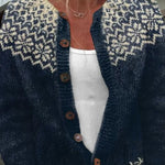 Kirstine | Strik udstråler tidløs nordisk elegance og hverdagskomfort i et håndværkstrin, der taler til den skandinaviske arv af enkelhed og kvalitet. Den dybt marineblå, cremefarvede nuance fanger lyset og forvandler kølige dage til en stille luksus. Det tykke, bløde garn er vævet til varme og holdbarhed, mens træknapper og præcise manchetter giver et gennemført finish. Med en afslappet silhuet er Kirstine let at integrere i et moderne lag-på-lag look – fra weekendmarkeder til kølige morgener på kontoret. Kirstine stråler af tidløs værdi og appellerer til både kvalitetsstrikkens samlere og dem, der sætter langtidsholdbar elegance i første række.