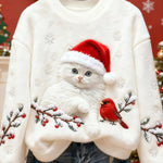Kvinders Søde Jule Kat Kunsttryk Casual Flannel Sweatshirt