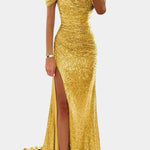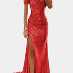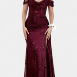 • Havfrue-snit og let train: Silhuetten fremhæver hofter og balancerer drapering med en let train for raffinement i bevægelse.