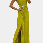 • Signaturdetaljer — Den krydsede halsudskæring og draperede silhuet tilføjer diskret poise og karakter.