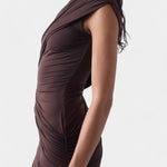 • Materiale og finish Kjolen er vævet i premium materiale med struktur og drapering, der bevarer form og komfort gennem bevægelser og gentagne begivenheder.