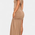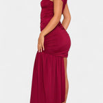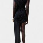 Liv | Asymmetrisk Kjole forenes i en sofistikeret dialog mellem moderne snit og tidløs elegance. Den uden stropper halsudskæring og den tætsiddende silhuet fremhæver kroppens konturer med raffinement, mens rynkningerne ved skuldre og talje tilføjer bevægelse og dybde. Den asymmetriske stropp giver kjolen et markant eksklusivt præg uden at gå på kompromis med komforten. Den begrænsede produktion understreger kjolens særlige karakter og gør den til et tidsløst ikon i garderoben. Premium materialer og håndværk af høj kvalitet sikrer lang levetid og bevarelse af form gennem gentagne anledninger.