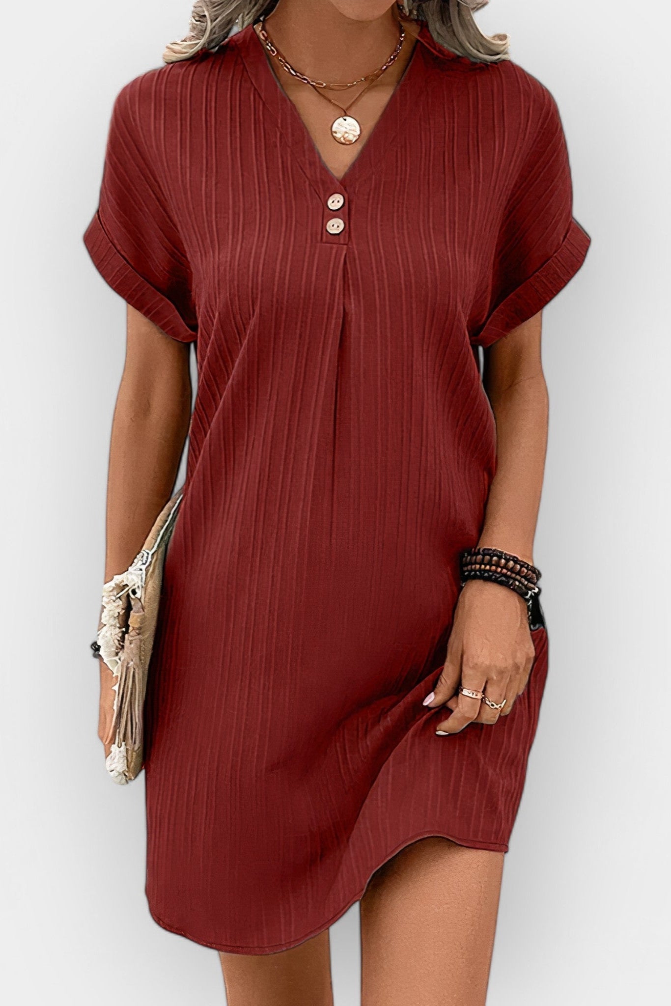 • Feminin V-hals og silhuet, der fremhæver dekoléten med elegant lethed.