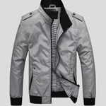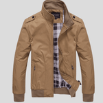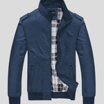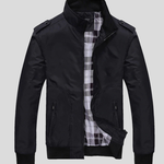 De klassiske detaljer som ståkrave, ternet for og lynlås giver jakken et sofistikeret, maskulint udtryk.