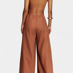Henriette | Belén buksedragt præsenterer en struktureret silhuet og en tidløs elegance, skabt til den bevidste garderobe. Halter-toppen med en enkel strop fremhæver skuldrene i et næsten arkitektonisk præg, mens den lige halsudskæring og de brede ben bevarer en ren, balanceret linje. Den strukturelle pasform bevarer form og holdning gennem dagen, og draperingen vidner om håndværkets arv og kvalitetsmaterialer. Sammen udgør detaljerne en varig luksus, der tiltaler samlere og den stilbevidste, som søger en subtil, moderne signatur i garderoben.