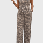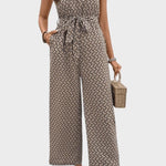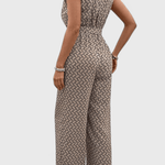 Marie | Geometrisk jumpsuit er en tidløs manifestation af raffinement og håndværk. Den ærmeløse silhuet pryder sig med et markant geometrisk mønster og er vævet i en åndbar bomuldsblanding, der følger kroppen gennem dagen. Bindebæltet ved taljen fremhæver silhuetten og giver en skræddersyet pasform, mens de brede ben skaber en afslappet, men gennemført silhouette. Den moderne grafiske stil udstråler sofistikeret arv og tidsløs kvalitet — ideel til sommerlige gåture, bruncher eller møder uden at gå på kompromis med komforten. Begrænset tilgængelighed gør Marie til et eftertragtet objekt for dem, der søger samlerobjektværdi og langtidsholdbar stil.