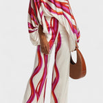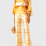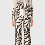 Sybella | Sæt udstråler tidløs elegance og håndværk i særklasse. Den sammensatte dragt består af en off-shoulder-bluse med pufærmer og brede bukser, der sammen skaber en harmonisk silhuet, hvor komfort møder raffinement. Hver detalje vidner om omhyggeligt håndværk og premium materialer, mens det udsmykkende mønster tilføjer kunstnerisk dybde. Provenance og æstetisk ballast giver sættet en varig værdi og eksklusiv appel, der tiltaler designelskere og samlere. Med fokus på holdbarhed og let elegance er Sybella | Sæt en investering i garderoben, der følger årstiderne med ynde og struktur.