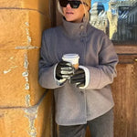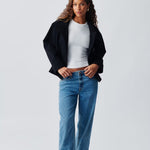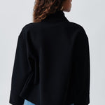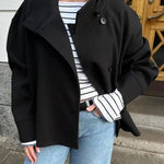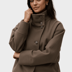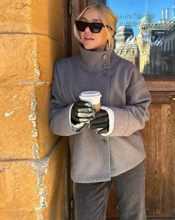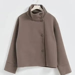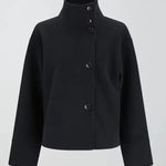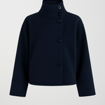 • Kort snit smigrer de fleste kropstyper, mens den asymmetriske lukning og den store krave skaber en tidløs silhouette, der udstråler raffinement uden at gå på kompromis med bevægelsesfriheden.