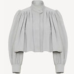 • Designdetaljer: Dramatiske puffærmer, klassiske knapper og feminint kraveparti fremhæver en tidløs finish.