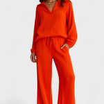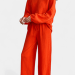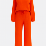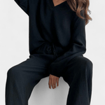 Med Asta | Langærmet sæt møder du tidløs elegance og håndværk i let bomuld. Den flatterende V-hals og den draperede silhuet giver et let, luftigt look, mens det to-delte design skaber et raffineret, afslappet udtryk. Sættet vidner om en arv af kvalitetsdesign og nøje udvalgte materialer, der tilsammen giver en varig tilføjelse til garderoben. Den åndbare bomuld står for komfort hele dagen, og den brede buksekonstruktion med justerbar talje tilføjer fleksibilitet uden at gå på kompromis med stil. Asta henvender sig til den krævende forbruger, der værdsætter detaljer, holdbarhed og en gennemført æstetik.