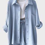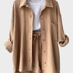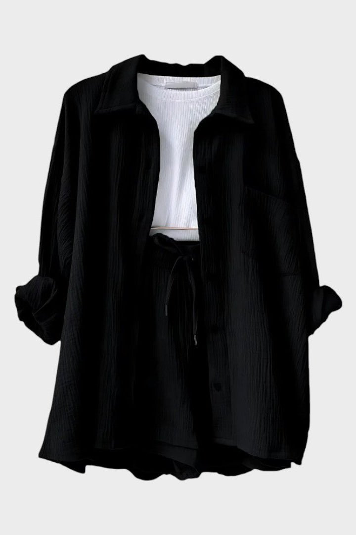 Astrid | Sommer sæt repræsenterer en tidsløs signatur fra vores kollektion. Dette letvægts-sæt består af en let skjorte og matchende shorts, designet til varme dage, hvor åndbarhed og komfort står i forgrunden. Håndværket afspejler arv og provenance gennem rene snit, præcise sømme og subtile detaljer. Med en begrænset produktion er det mere end tøj – det er en investering i varig værdi og en fornemmelse af prestige i sommergarderoben.