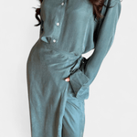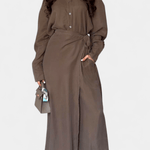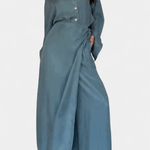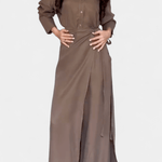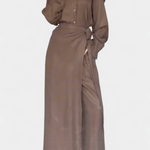 Ida | Langærmet sæt er en hyldest til håndværk og diskret prestige. Sætets løs skjorte og bukser i skørt-lignende snit giver bevægelsesfrihed og let elegance uden at begrænse silhuetten. Fremstillet med omtanke og materialer af høj kvalitet, afspejler Ida en tidsløs æstetik og varig værdi, der tiltaler samlere og bevidste købere. Den begrænsede tilgængelighed gør Ida til et eksklusivt element i garderoben, hvor hver detalje taler om kvalitet. Det bløde stof falder naturligt og følger bevægelser uden at tvinge; silhuetten forbliver slank uden elastik. Den neutrale palet giver Ida en tidløs appel og nem styling fra forår til efterår for både hverdags- og aftenslook. Sættet udtrykker en arv af omhyggelige snit og materialer, derbinder klassisk elegance med moderne komfort. Som bevis på langsigtet værdi er Ida designet til at holde sig relevant år efter år.