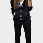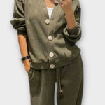 Johanne forener nutidig stil med gennemført håndværk. Dette langærmet sæt kombinerer en lige bukse silhuet med en jakke i klassisk snit og store knapper, hvilket giver et raffineret, tidløst udtryk. Sættet fremstår som en alsidig løsning til kontor, møder og fritidsaktiviteter, hvor det rene, holdbare design og den velovervejede pasform løfter hver styling. Jakken kan bæres separat og giver derfor ekstra stylingmuligheder. Den enkle, men sofistikerede æstetik gør Johanne til en garderobefavorit, der holder sig frisk år efter år og præsenterer sig nydeligt — både som helhed og i enkelte kombinationer.