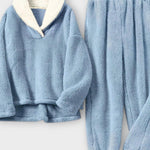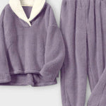 Maja | Flanel sæt forener tidløs elegance med sans for håndværk. Sættet består af en matchende bluse og bukser i samme nuance, fremstillet af blød, varm flanel. Hvert sting vidner om omhyggeligt håndværk og en arv af kvalitetsmaterialer, der står tidens test. Den klassiske knapdesign møder et afslappet snit, så looket forbliver sofistikeret og behageligt. Med begrænset antal til rådighed tilføjes en eksklusivitet og en varig værdi, som appellerer til samlere og dem, der værdsætter bæredygtig stil.