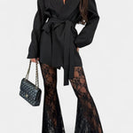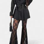• Silhuet og design: Lang blazer med bælte, højtaljede bukser med blomster- og sejmandsinspirerede snit samt klokket fald i nederdelen.