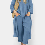 Pernille | Langærmet sæt udstråler ro og raffineret elegance. Håndværket møder førsteklasses materialer i et let, åndbart snit, der giver fri bevægelse uden at gå på kompromis med stil. Det rummelige design og den gennemførte konstruktion giver en moderne, ubesværet kvalitet, der passer til gåture, rejser og møder – og som fortsat fremstår som en tidløs investering. Tilgængeligt i et begrænset antal, hvilket understreger sættets eksklusive karakter og langtidsholdbare appel.