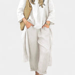 • Snit og bevægelse: Rummeligt snit med brede bukser og løs tunika giver maksimal bevægelsesfrihed og en let, elegant silhuet.