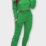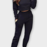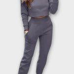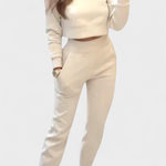 Stine | Beige sæt udtrykker en raffineret forening af mode og funktion. Med et moderne, minimalistisk design prioriteres komfort uden at gå på kompromis med stil. Den korte top med høj hals harmonerer elegant med højtaljede joggerbukser og skaber et urbant, nutidigt look. Det bløde materiale og det kropsnære snit giver behagelig velvære hele dagen, samtidig med at sættet bevarer sin form og langtidsholdbar værdi. Designet signalerer provenance i hvert sting og inviterer til en samlergarderobe, der kan bygges videre med accessories.