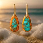 Nanna | Flamme-øreringe er et statement i Solenea håndværk. Hvert par er omhyggeligt håndlavet og afspejler Goas kysts farveskala i en raffineret balance mellem varme orange nuancer og klart turkis. Den autentiske håndværkstradition findes i hvert snit, og den unikke stenudvælgelse giver hvert sæt en tidløs karakter, der tiltaler samlere af finere smykker. Provenance og tilblivelse vidner om Soleneas engagement i kvalitet, hvor hver ørestik bærer sin egen historie. En begrænset produktion og et unikt stenvalg understreger kollektionens samle- og arvestykke-potentiale.