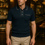 • Udsøgt håndværk og præcision kendetager Tobias™ | Old Money Strikpolo, hvor hver maske er omhyggeligt udført af erfarne strikkere for en ensartet, let draperet pasform.