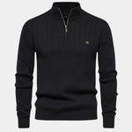 Mikkel™ | Halvzip Bomuldstrøje udstråler tidløs luksus og uovertruffen håndværk. Fremstillet i 95% bomuld og 5% elastan giver den en let, mærkbar pasform og behagelig bevægelsesfrihed. De lodrette striber og den elegante halv-zip skaber et sofistikeret look, der passer til både dagligdag og aften. Med omtanke for materialer og detaljer er Mikkel™ en investering i kvalitet, der holder sin stil år efter år.