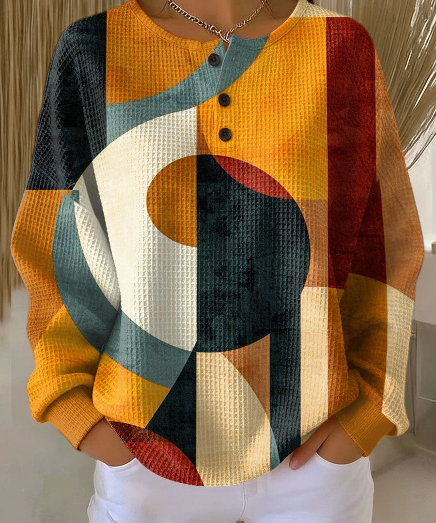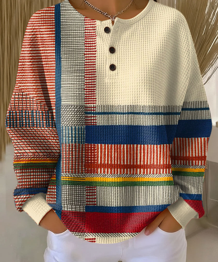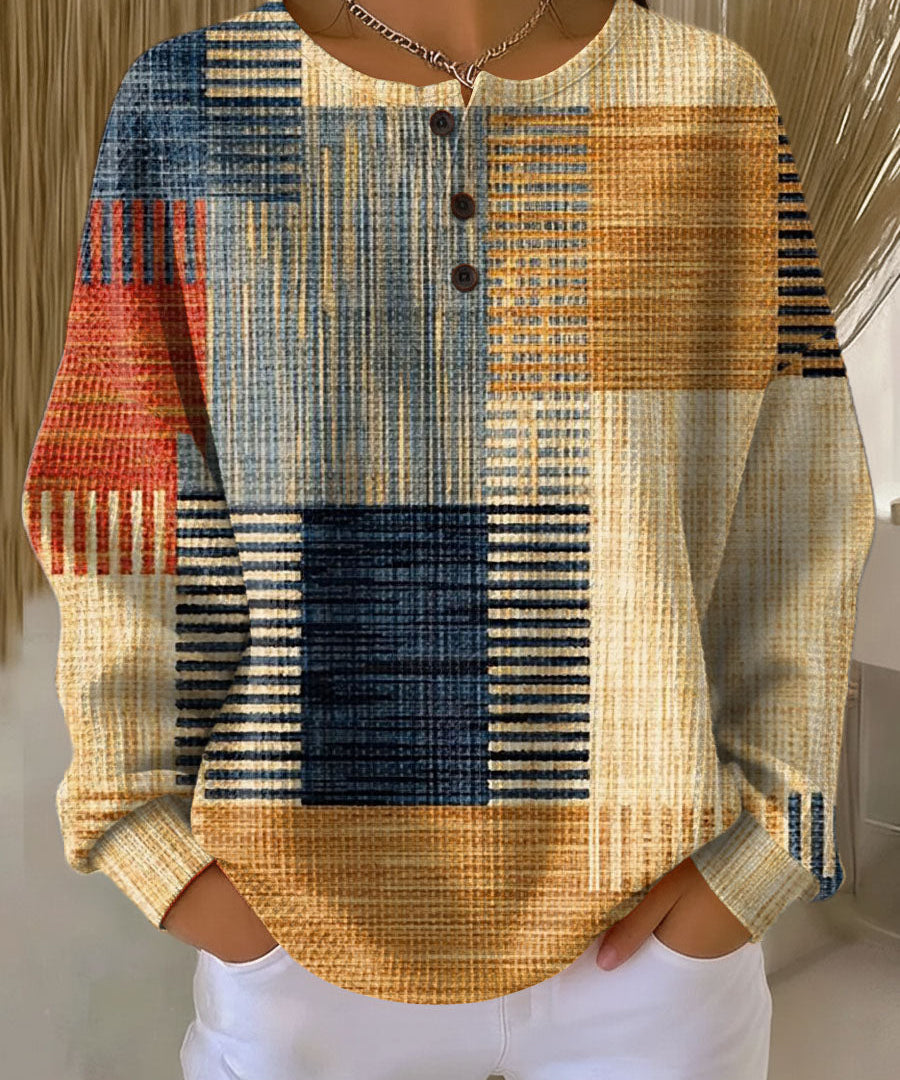 Lærke™ - Vaffelpullover med geometrisk mønster