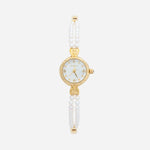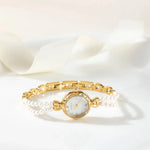 • Materialer og finish: Varme guldfinish og en drejet rem, der følger urkassen med ynde.