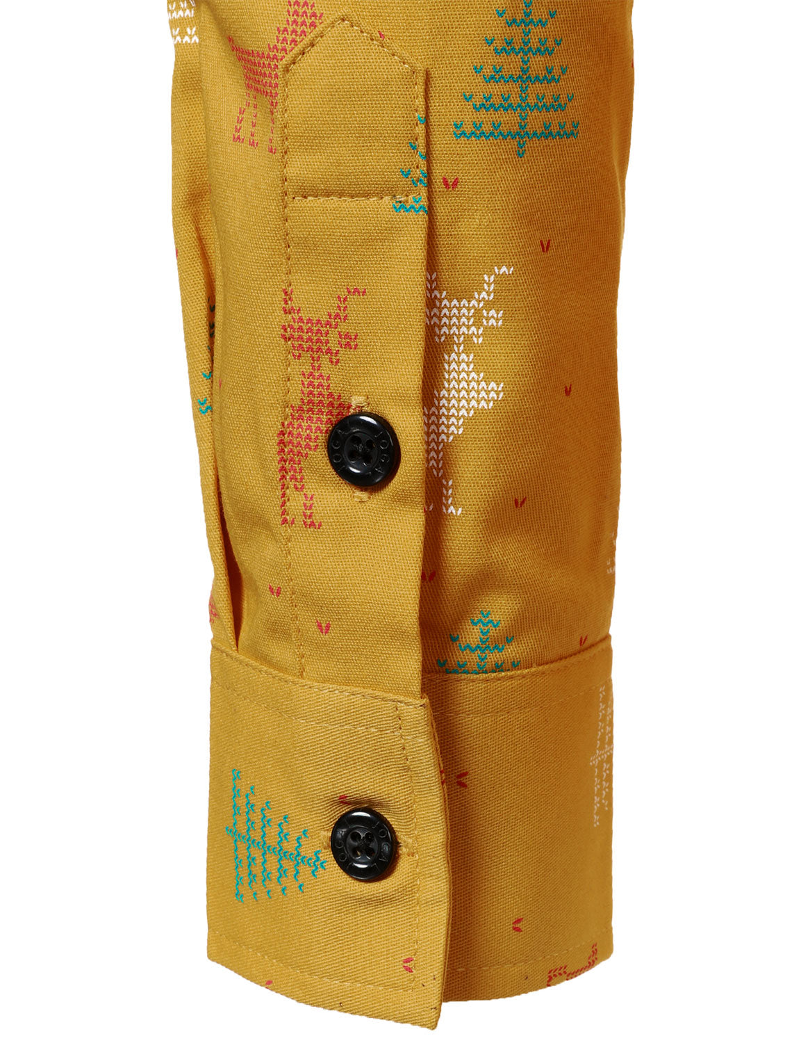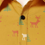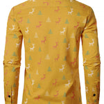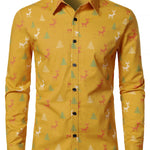 Herre Juletræ Elg Print Åndbar Gul Langærmet Skjorte