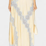 Luna | Sæt fremviser en sofistikeret fusion af samet-silkeagtig glans og romantiske detaljer, hvor håndværkets omhu og en tydelig provenance mødes. Toppen uden ærmer med tynde stropper og den luftige midi-kjole bevæger sig med naturlig elegance og skaber en tidløs silhuet, mens kontrastblonden tilfører struktur og fransk retro-chic. Den V-halsede halsudskæring fremhæver feminine konturer med diskret raffinement. Begrænset oplag understreger eksklusiviteten og gør Luna | Sæt til en tidløs investering i stil, der nemt tilpasses fra dag til aften med forskellig tilbehør og sko.