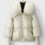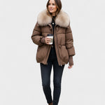 Sofia – Elegant frakke er skabt til den moderne kvinde, der kræver varme og tidløs stil i en elegant balance. Den tætsiddende silhuet fremhæver konturen med sofistikeret elegance, mens det luksuriøse pelsfor giver varme og komfort uden at tynges. Frakkens lette konstruktion og materialer af høj kvalitet sikrer daglig bærekomfort, så du bevæger dig frit gennem sæsonerne. Den universelle stil gør Sofia passende til både hverdagslook og festlige lejligheder, og håndværket signalerer lang levetid og en varig prestige. En diskret, eksklusiv investering, hvis arv og tidløs værdi tydeligt afspejles i hver detalje og i den omtanke, der ligger bag produktionen.